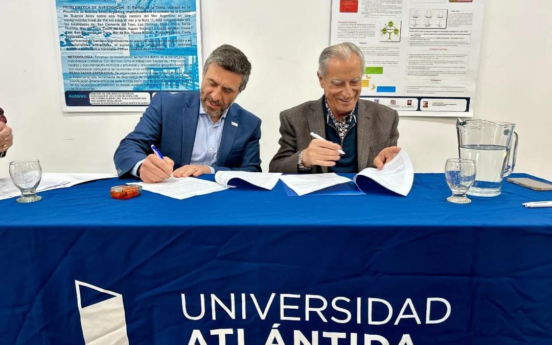 El intendente del Partido de La Costa, Juan de Jesús, y el Rector de la Universidad Atlántida Argentina, Amado Zogbi, firmaron el convenio por el cual el Municipio continúa brindando el acompañamiento a carreras de nivel superior destinadas a vecinos y vecinas del Partido de La Costa.