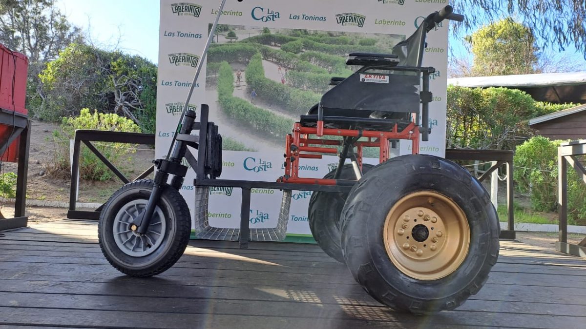 El Parque Temático Laberinto de Las Toninas incorporó una silla de ruedas adaptada para discapacidad motriz, y así favorecer el recorrido por sus caminos.