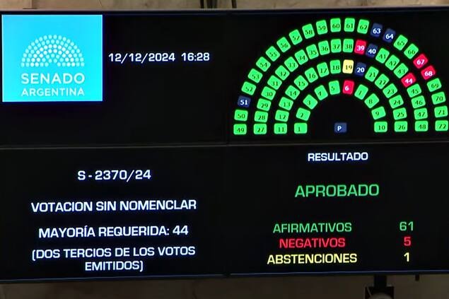 La votación terminó con 61 votos a favor, 5 en contra y una abstención. Al kirchnerismo, que impulsaba que lo echaran, le faltó el senador Gerardo Montenegro, quien viajó al Vaticano para participar de un encuentro con el Papa.