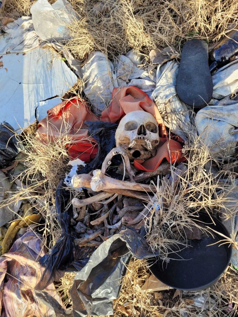 Al arribar el personal policial, constató que dentro de una bolsa de consorcio y entre residuos, había un cráneo y otros huesos, de los que no se pudo establecer su procedencia.
