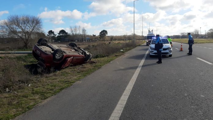 Pese a la violencia del vuelco, el conductor, de 25 años, y su acompañante, una joven de 23, no sufrieron heridas y fueron trasladados de forma preventiva al Hospital de Santa Teresita.