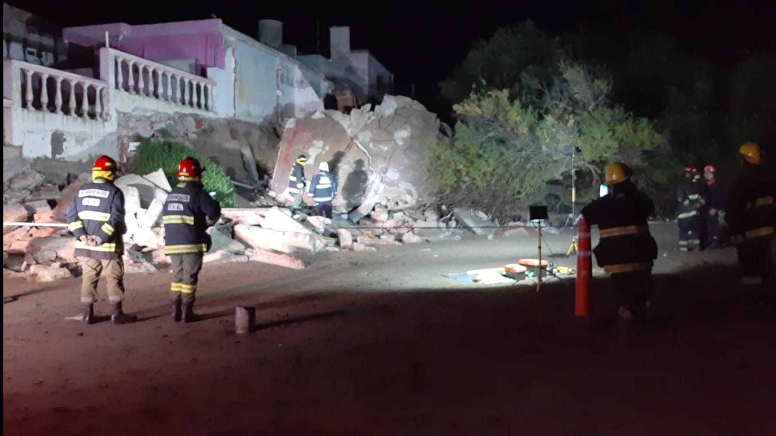 “Pasaron dos binomios, es decir dos canes con sus guías para búsqueda de personas vivas. Después pasamos otro can en busca de RH, pero por suerte dio negativo, no había víctimas entre los escombros”, aseguró el Jefe de Bomberos. “Esta casa de la calle 64 está sobre la línea de médanos”, comentó.