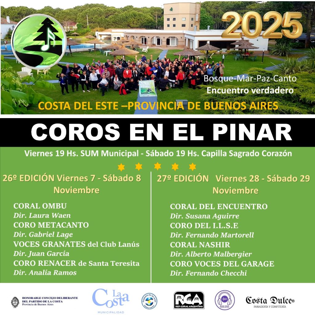 Llega una nueva edición de “Coros en el Pinar”, el tradicional encuentro coral que celebra la música y la convivencia bajo el lema: “Bosque, mar, paz, canto. Encuentro verdadero”.